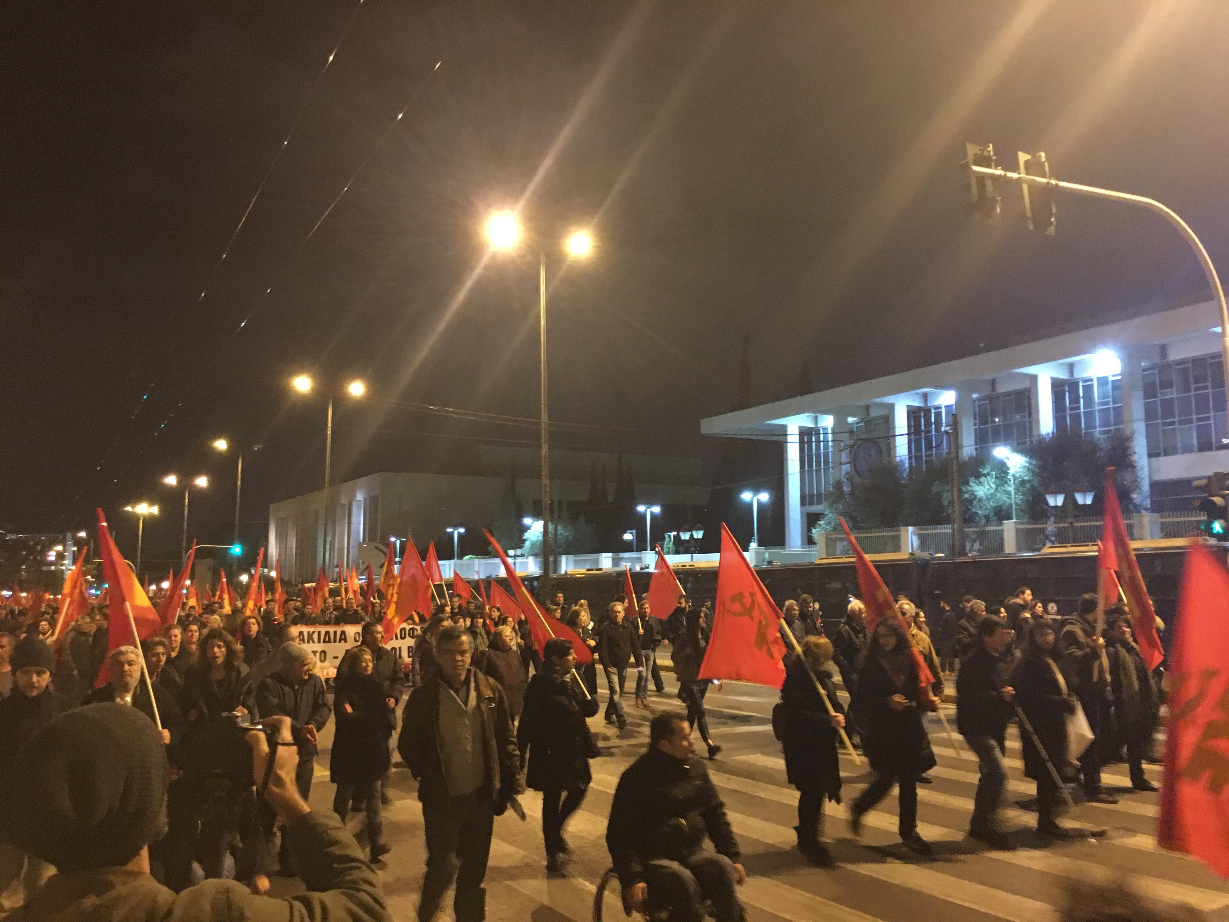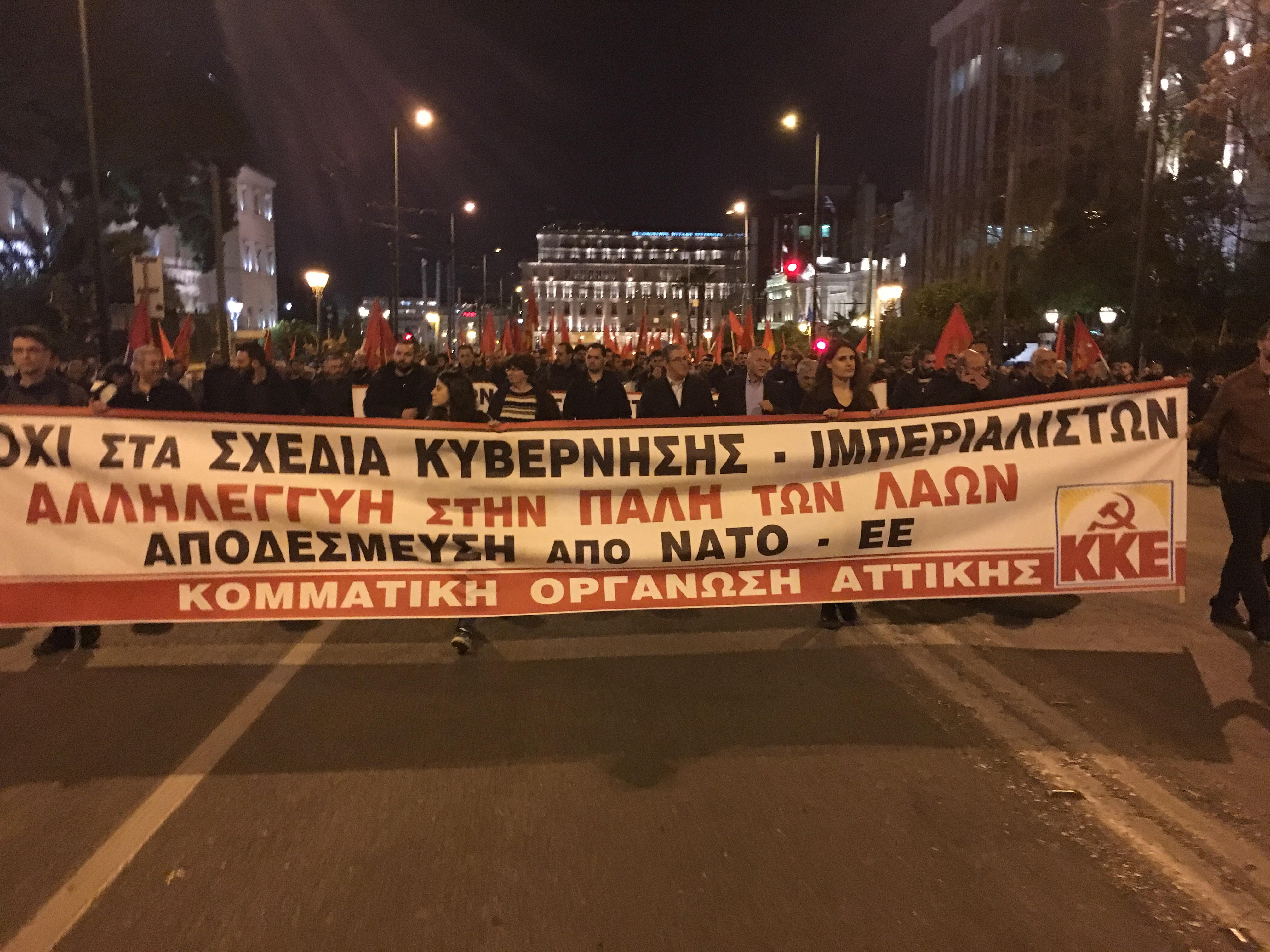 Μετά την ολοκλήρωση της ομιλίας του γ.γ. του ΚΚΕ, ακολούθησε πορεία προς την αμερικάνικη πρεσβεία στην Βασ. Σοφίας.