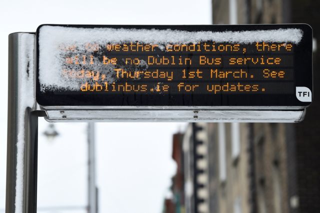 Η Ιρλανδία ετοιμάζεται για τη μεγαλύτερη χιονόπτωση από το 1982 με την κυκλοφορία των μέσων μαζικής μεταφοράς να έχει διακοπεί και τα σχολεία σε όλη τη χώρα να παραμένουν κλειστά.