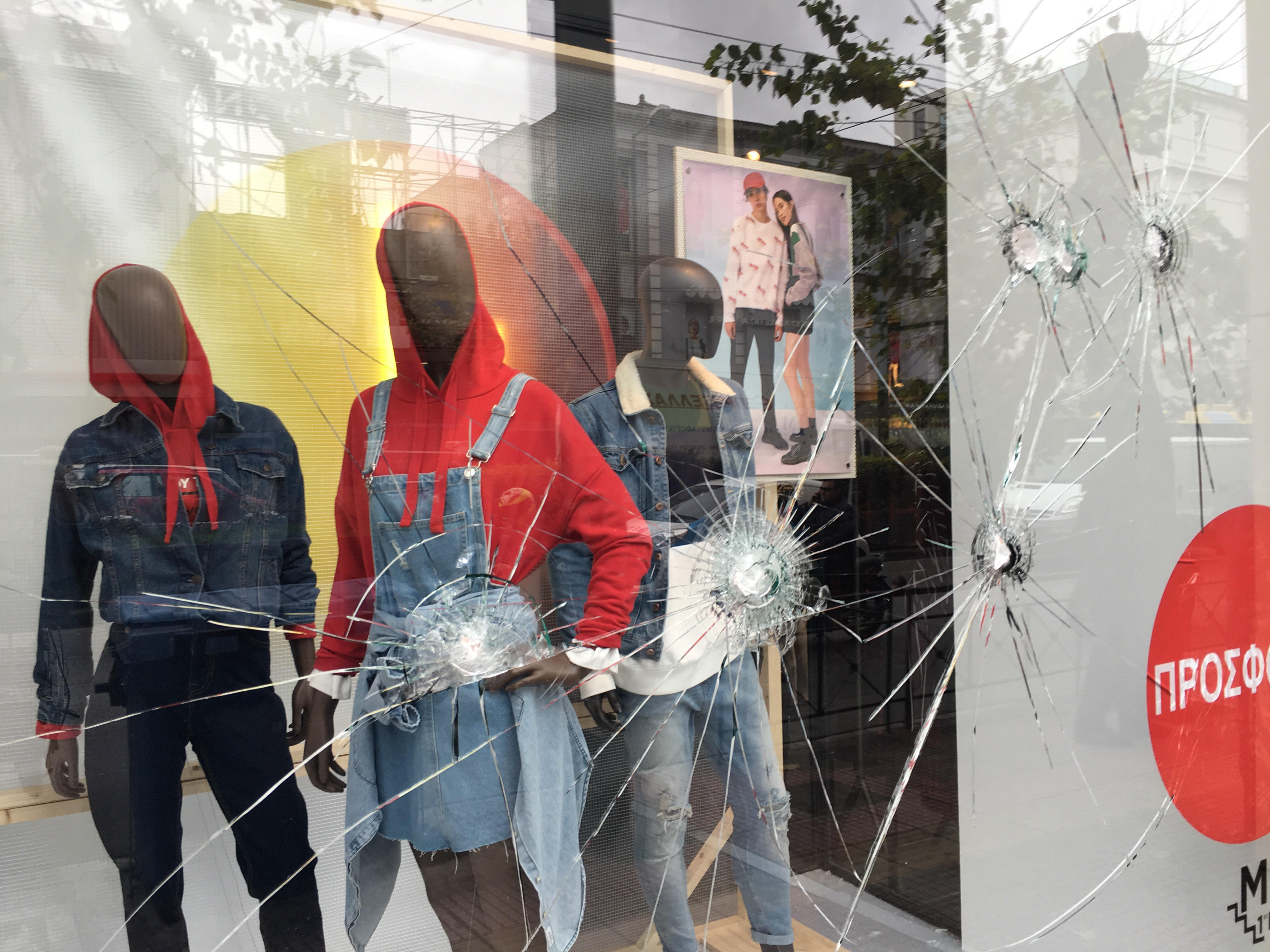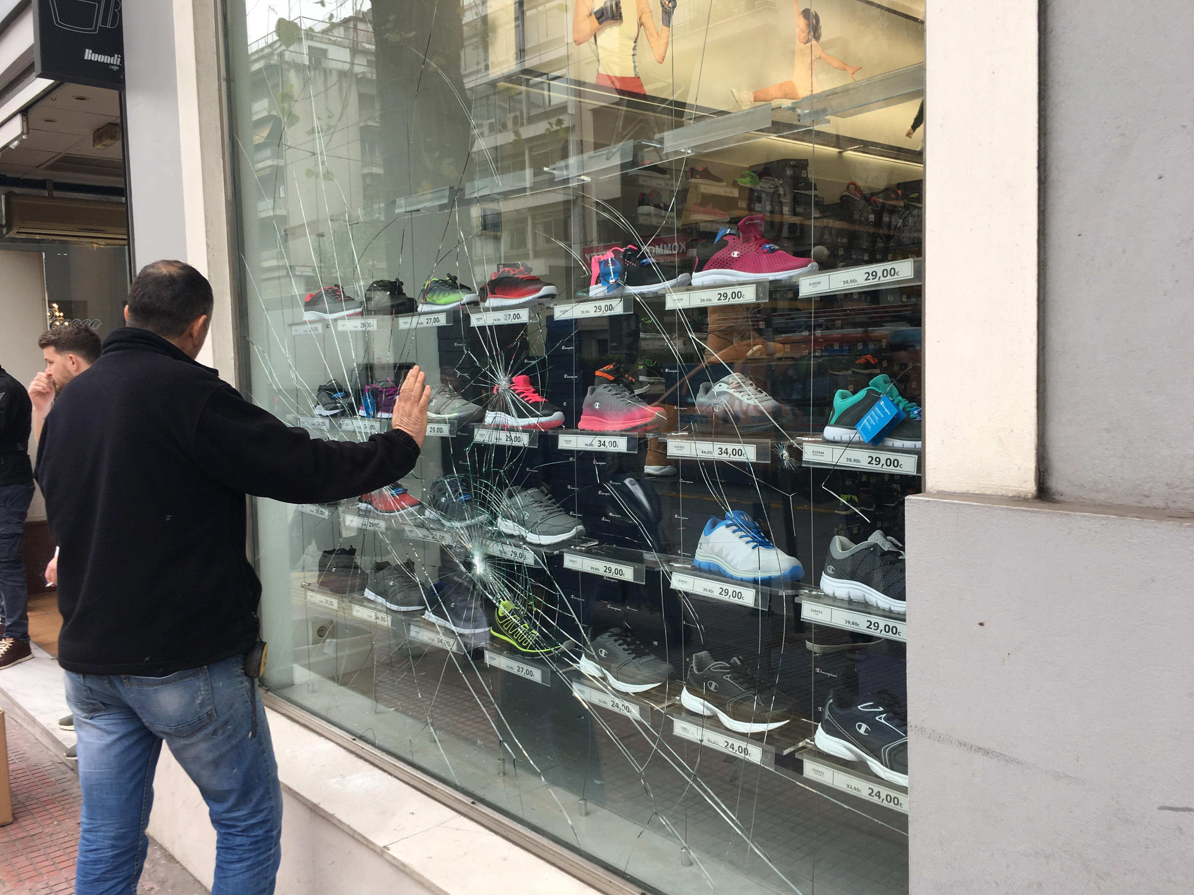 Έσπασαν με βαριοπούλες καταστήματα και στην Πατησίων [Βίντεο-Εικόνες]