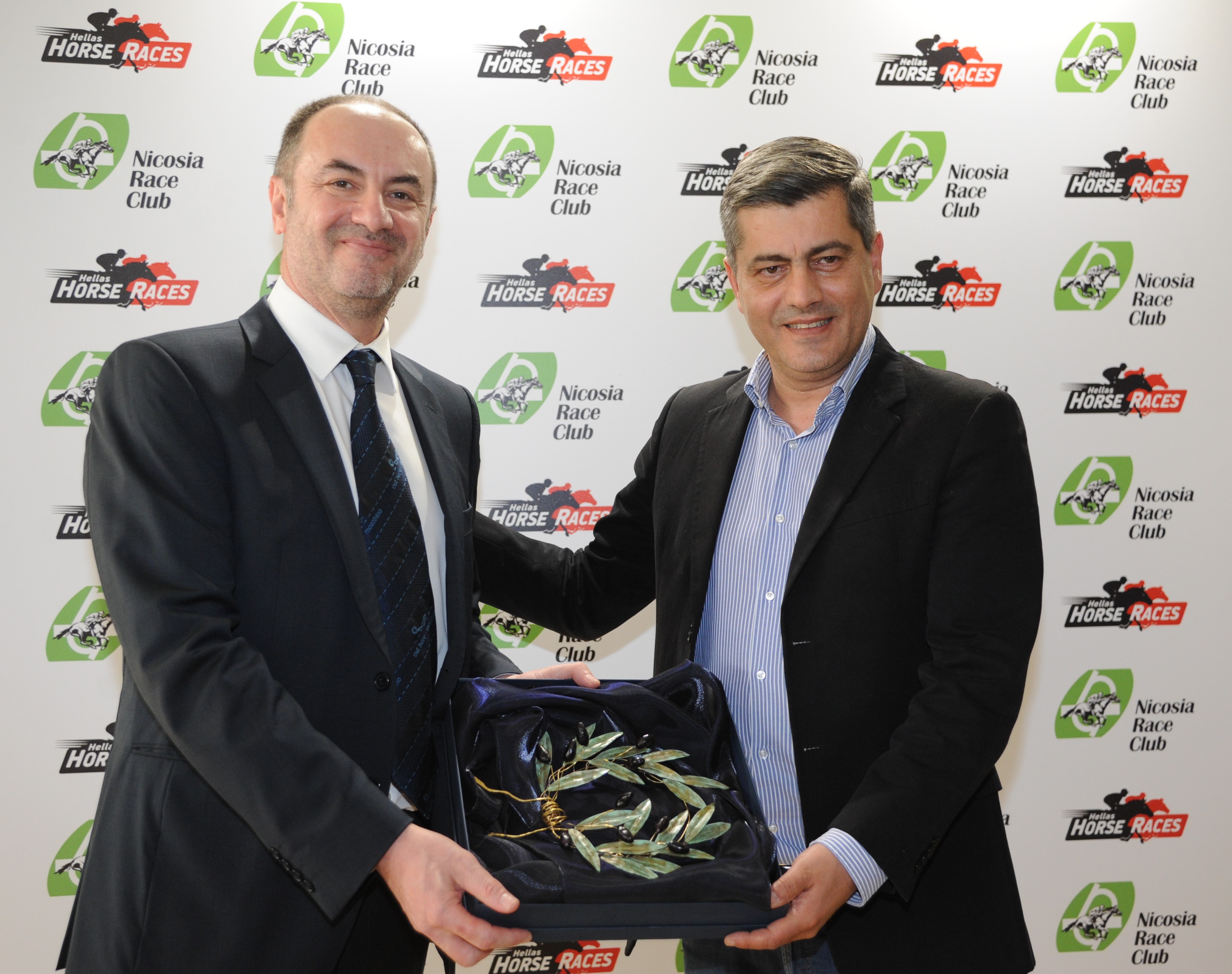 O Γενικός Διευθυντής της Λέσχης Ιπποδρομιών Λευκωσίας Γιώργος Χατζημηνάς (αριστερά) μαζί τον Οδυσσέα Χριστοφόρου (β’ αντιπρόεδρο της «Ιπποδρομίες Α.Ε.» και επικεφαλής Εταιρικών Υποθέσεων ΟΠΑΠ