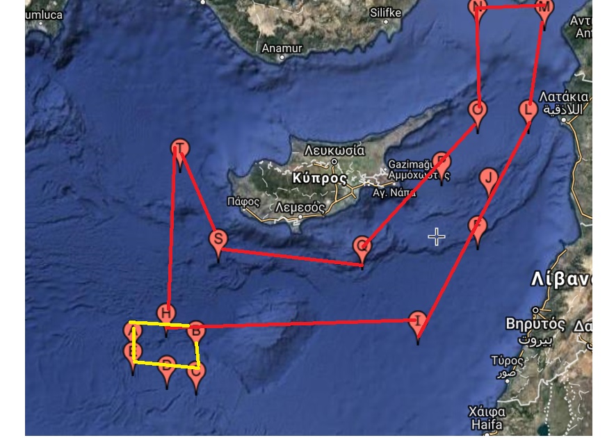 Οπως αναφέρει η εφημερίδα Φιλελεύθερος της Κύπρου, η νέα NAVTEX 0369/18 της Τουρκίας δεσμεύει αυτήν τη μεγάλη περιοχή για διενέργεια άσκησης στρατιωτικού σκάφους με τη ρυμούλκηση υποβρύχιας συσκευής από τις 11- 18 Μαρτίου και από τις 22-29 Μαρτίου.