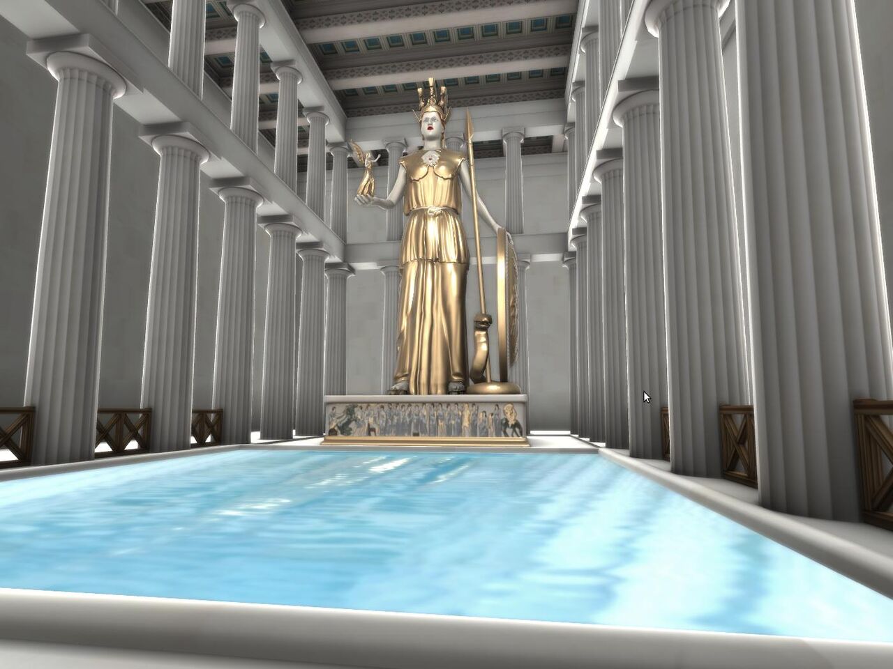 Παράλληλα, παρουσιάζονται ναοί και αγάλματα τα οποία δεν διασώζονται μέχρι σήμερα όπως το Αρρηφόριον, το Ιερό του Διός Πολιέως, το Ιερό της Αρτέμιδος Βραυρωνίας, η Χαλκοθήκη, ο γλυπτός διάκοσμος του Παρθενώνα με το χρυσελεφάντινο άγαλμα της θεάς Αθηνάς κ.α.