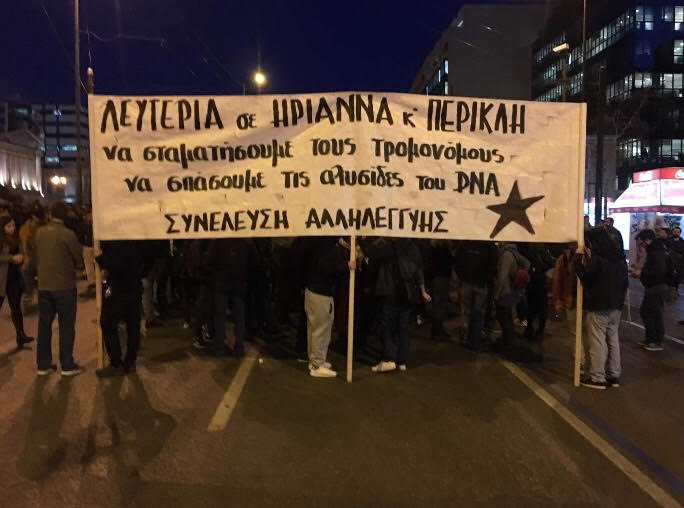 Πορεία αλληλεγγύης στο κέντρο της Αθήνας για την Ηριάννα και τον Περικλή