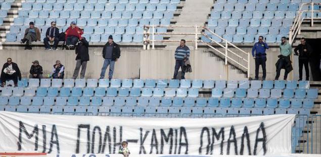 Με αφορμή το μότο του Δικεφάλου «Μια πόλη, μια ομάδα», ο κόσμος του Ηρακλή λίγο το διαφοροποίησε για να γίνει: «Μια πόλη-καμία ομάδα».