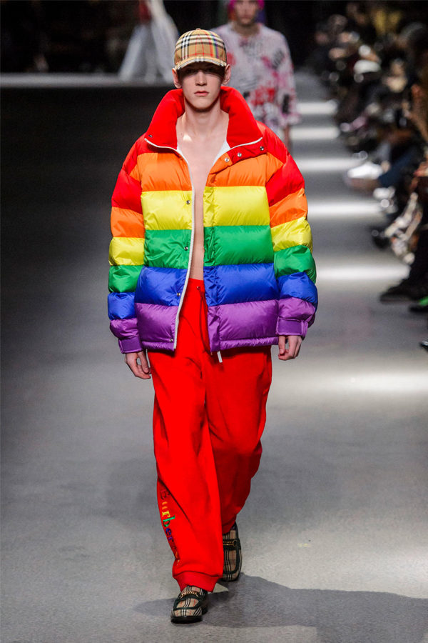 Η πασαρέλα γέμισε με σχέδια χρωματισμένα σαν το ουράνιο τόξο, μια ένδειξη προσωπικής δήλωσης και υποστήριξης προς την LGBTQ+ κοινότητα.