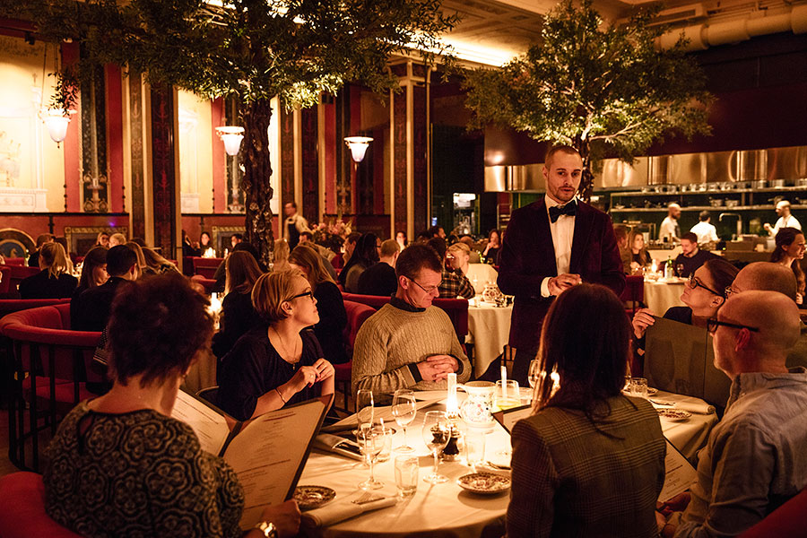 Στο κέντρο του εστιατορίου, ανάμεσα στα τραπέζια, προστέθηκε ένα ζευγάρι δέντρων ελιάς, από την Ιταλία. Με χρώματα, όπως το κόκκινο, στα έπιπλα και υφές από βελούδο, το εστιατόριο καταφέρνει να ταξιδέψει τους επισκέπτες σε παλιές δεκαετίες. Με πράσινα ψηφιδωτά καλύφθηκε ο τοίχος της ανοιχτής κουζίνας, όπου παλαιότερα υπήρχε η μεγάλη οθόνη του σουηδικού κινηματογράφου.