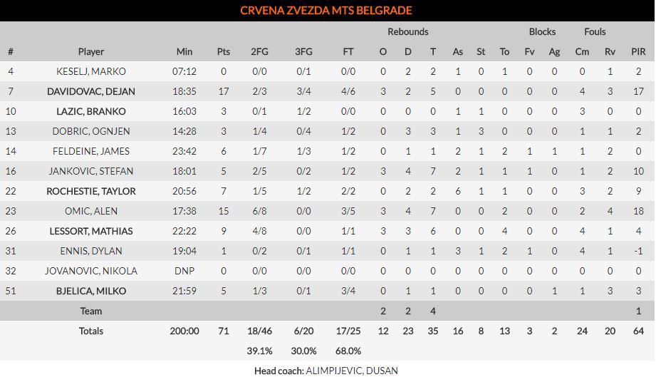 ΠΑΝΑΘΗΝΑΪΚΟΣ (ΕΛΛΑΔΑ)-Ερυθρός Αστέρας (Σερβία) 91-71