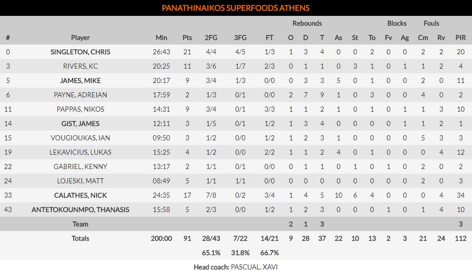Ο Πασκουάλ πήρε ταϊμ άουτ και άλλαξε το πλάνο του όχι όμως και την πεντάδα, η οποία αντέδρασε σωστά και ανέβασε τη διαφορά στους 19 πόντους (87-68 στο 38’). Το σφύριγμα της λήξης βρήκε τον Παναθηναϊκό νικητή με το τελικό 91-71.