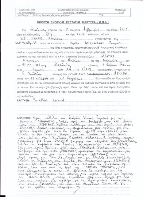 The court records contain numerous dialogues of those who have been implicated and are being investigated in the case, which demonstrate both the preparations for the arson attacks, and the objective of terrorising and blackmailing. The following dialogue, which according to the court records concerns a briefing on the arson attack on the automobile of Evangelopoulos’ wife, is indicative.