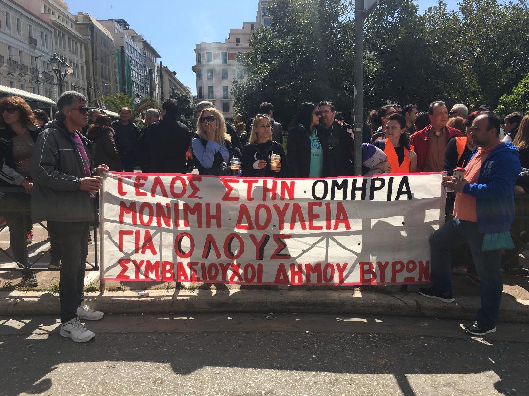 Συγκέντρωση συμβασιούχων ΟΤΑ έξω από τη Βουλή [βίντεο]