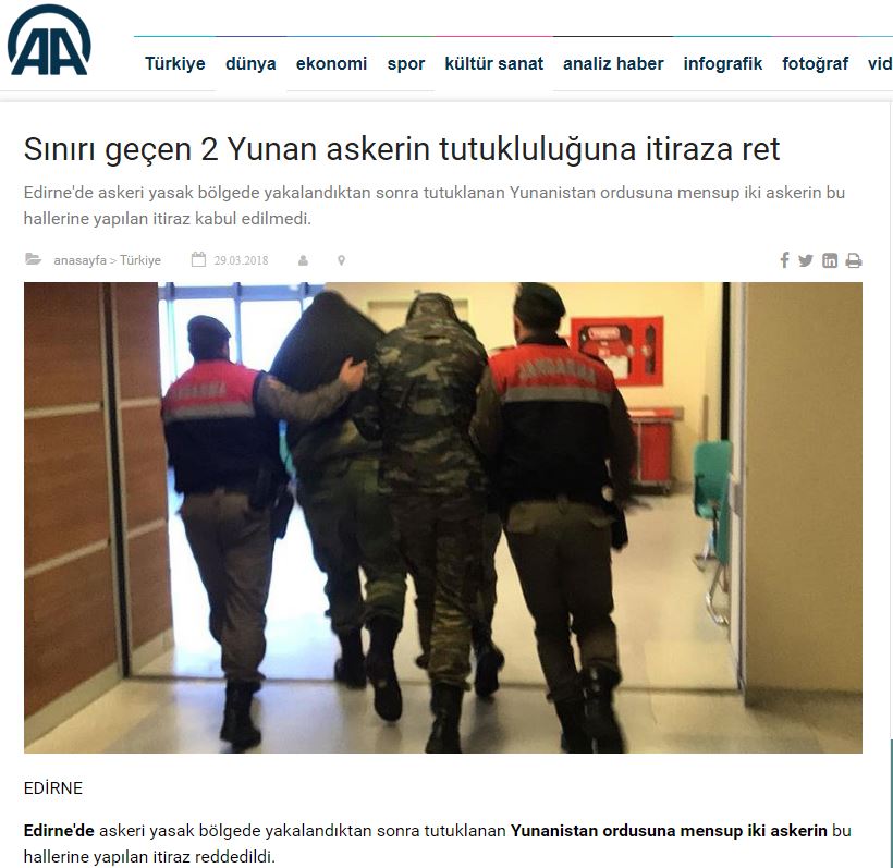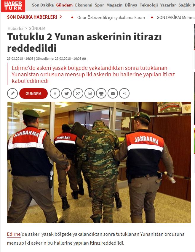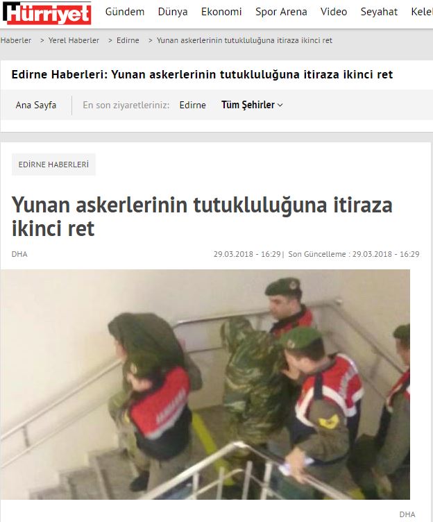 Έτσι, παραμένουν υπό κράτηση μέχρι νεωτέρας οι δύο έλληνες στρατιωτικοί.