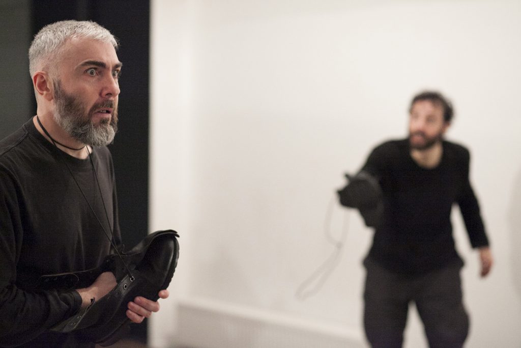 Η παράστασή μας παίζεται πάνω στα ερείπια του κόσμου, σ’ ένα μέλλον λιγότερο ή περισσότερο κοντινό σε μας, όπου διατηρούνται ανοιχτά όλα τα τραύματα απ’ το παρόν και το παρελθόν της ανθρωπότητας… Αλλά και οι προσδοκίες… Σ’ αυτό το οριακό σημείο ύπαρξης του ανθρώπου, ποιες είναι οι ελάχιστες δυνατές προϋποθέσεις επανεκκίνησης της ζωής, μιας ζωής που ν’ αξίζει να τη ζήσει κανείς; Στο «Περιμένοντας τον Γκοντό» βρήκαμε δυο πιθανές απαντήσεις κι εκεί στηρίξαμε τη δουλειά μας: