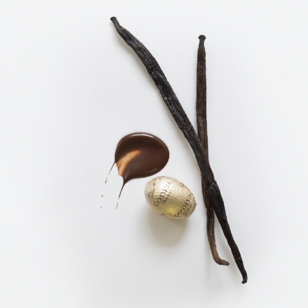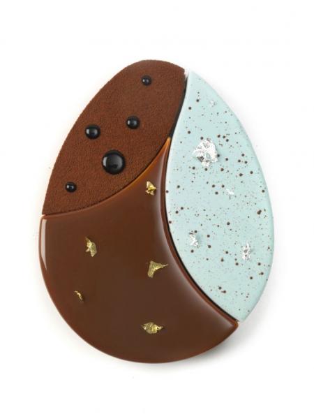 Αφηρημένα σχέδια και πιτσιλιές συνθέτουν την εικόνα του αυγού που συναρπάζει με τη γεύση του. Η γαλλική σοκολάτα συνδυάζεται με γεύσεις όπως ο καφές, το βερίκοκο, το ancho τσίλι. Στο εσωτερικό κρύβονται σοκολατένιες τρούφες με ανάρπαστους συνδυασμούς σοκολάτας.