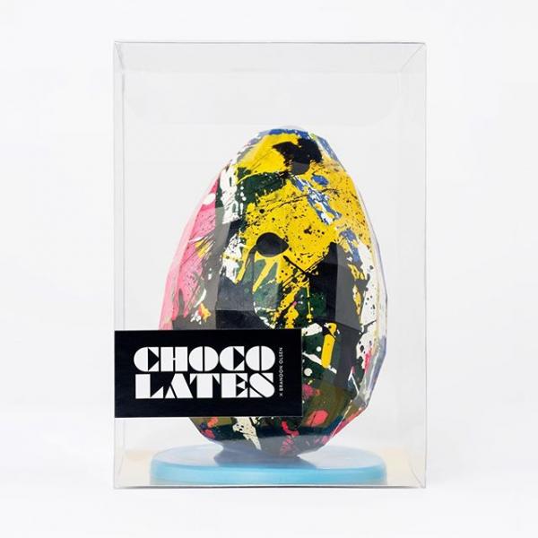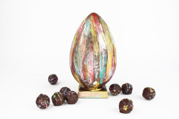 Ένα αυγό σαν αφηρημένη τέχνη. Η 65% περουβιανή μαύρη σοκολάτα αποτελεί τη βάση του αυγού, η οποία καλύπτεται από μια παλέτα πολλών χρωμάτων. Δέκα διαθέσιμα αυγά συνοδεύονται από εννιά μικρές τρούφες σοκολάτας.