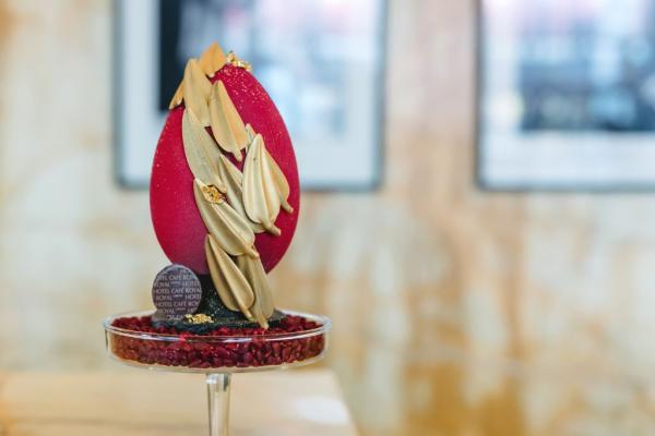 Ο σοκολατοποιός Πιέρ Μαρκολίνι προσδίδει ένα μυστήριο στο πασχαλινό αυγό. Μέσα στο αυγό έχει κρύψει αυγά σε έξι διαφορετικές γεύσεις όπως είναι η πραλίνα από φιστικί αιγίνης, σοκολάτα γάλακτος και τέσσερις ακόμη ξεχωριστές σοκολατένιες επιλογές.