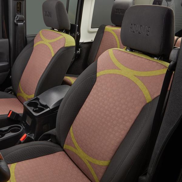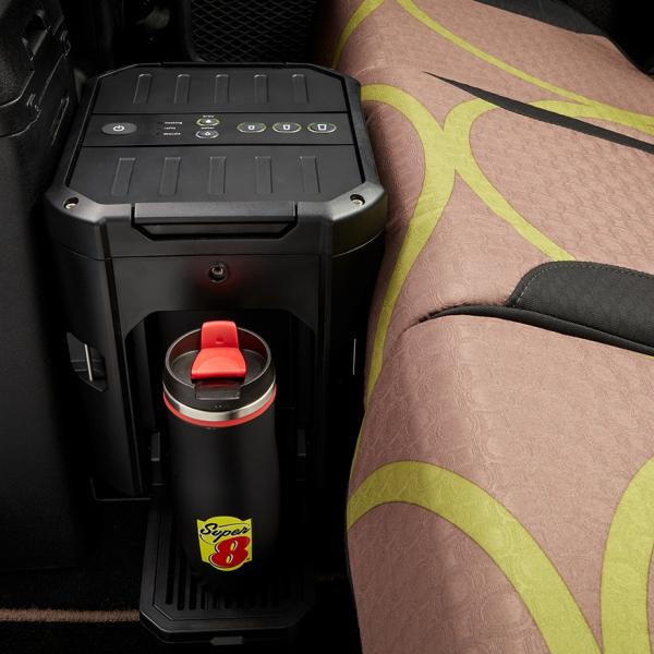 Σε αυτά συγκαταλέγονται οι επιλογές για τους χρωματισμούς των επενδύσεων του Wrangler που παραπέμπουν στις αποχρώσεις των κλινοσκεπασμάτων των δωματίων των Super 8, η παρουσία ενός ψυγείου-mini bar, μιας καφετιέρας καθώς και ειδικά μετασκευασμένου χώρου όπου κανείς μπορεί να αποθηκεύσει μαξιλάρια και κουβέρτες.