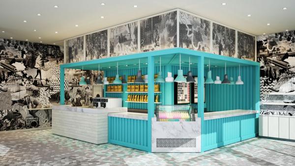 Το Sweet Salvation είναι το νέο παγωτατζίδικο στο Ντουμπάι. Με σήμα κατατεθέν το έντονο γαλάζιο χρώμα στην είσοδο και στο εσωτερικό του μαγαζιού, η αρχιτεκτονική φίρμα Navigate Design έβαλε τη δική της υπογραφή στο χώρο. Η τάση του μαρμάρου είναι ιδανική επιλογή για ένα χώρο εστίασης και δένει απόλυτα με το γαλάζιο. Γεωμετρικά μοτίβα επιλέχθηκαν για το πάτωμα, ενώ οι τοίχοι έχουν διακοσμηθεί από ασπρόμαυρη ταπετσαρία.