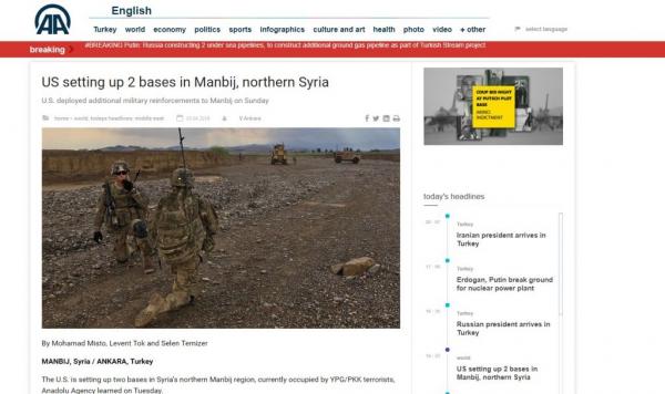 Τον Ιούλιο του 2017 το Anadolu είχε μεταδώσει ένα ρεπορτάζ που συνοδευόταν από ένα γράφημα όπου καταγράφονταν οι θέσεις των 10 αμερικανικών στρατιωτικών εγκαταστάσεων στη Συρία. Μάλιστα σε κάποιες περιπτώσεις ανέφερε και των αριθμό των ανδρών των ειδικών δυνάμεων που βρίσκονταν εκεί. Το Πεντάγωνο αντέδρασε έντονα στη δημοσιοποίηση αυτών των στοιχείων και οι τουρκικές αρχές αρνήθηκαν κάθε ανάμιξή τους στην υπόθεση.