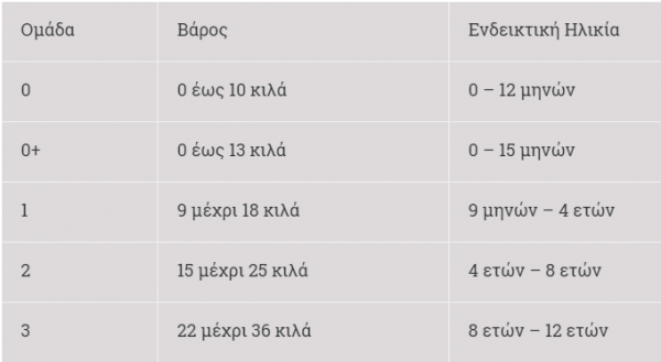 Έχουν περάσει οι εποχές που οι μανάδες μας, μας έπαιρναν αγκαλιά στο μπροστινό κάθισμα. Τα παιδικά καθίσματα πλέον έρχονται με προδιαγραφές και με κατηγορίες και αυτό που θα επιλέξεις θα πρέπει να διαθέτει έγκριση βάσει των Ευρωπαϊκών Κανονισμών ECE R 44/03 ή ECE R 44/04. Στα εγκεκριμένα καθίσματα, υπάρχει μία Ετικέτα Έγκρισης, στην οποία, μεταξύ άλλων αναφέρεται το μέγιστο επιτρεπόμενο βάρος του παιδιού που υποστηρίζει.