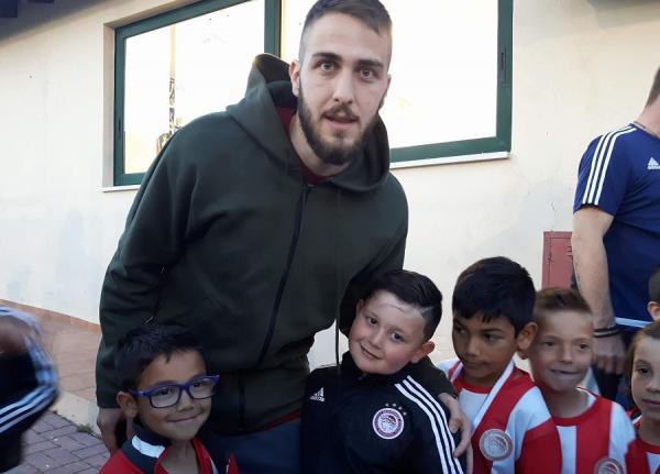 Ο Έλληνας μέσος του Ολυμπιακού έβγαλε φωτογραφίες με τους πιτσιρικάδες και υπέγραψε αρκετά αυτόγραφα, αφού ήταν το πρόσωπο της εκδήλωσης