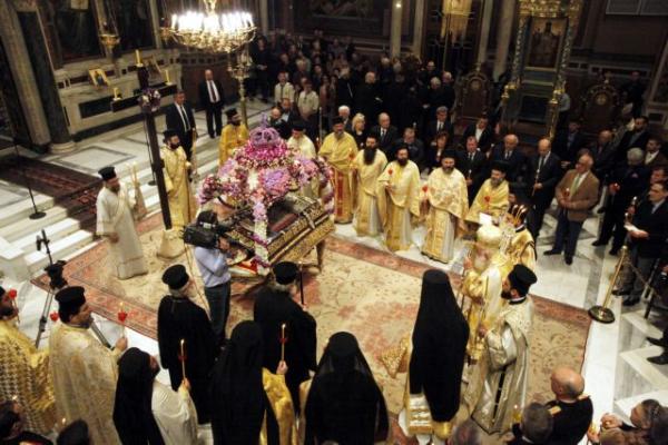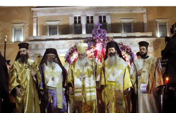 Χιλιάδες πιστοί βρέθηκαν στους δρόμους του κέντρου της Αθήνας για να παρακολουθήσουν την περιφορά του Επιταφίου της Μητρόπολης Αθηνών, που πραγματοποιήθηκε με επικεφαλής τον αρχιεπίσκοπο Αθηνών και πάσης Ελλάδος Ιερώνυμο.