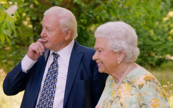 Φορώντας εμπριμέ φόρεμα και χωρίς καπέλο, η βασίλισσα Ελισάβετ της Αγγλίας χαίρεται τον ήλιο κάνοντας περίπατο στον κήπο των Ανακτόρων του Μπάκιγχαμ μαζί με έναν παλιό της γνώριμο, τον συνομήλικό της συγγραφέα και φυσιοδίφη, Σερ Ντέιβιντ Ατένμπορο, στον οποίο δίνει συνέντευξη.