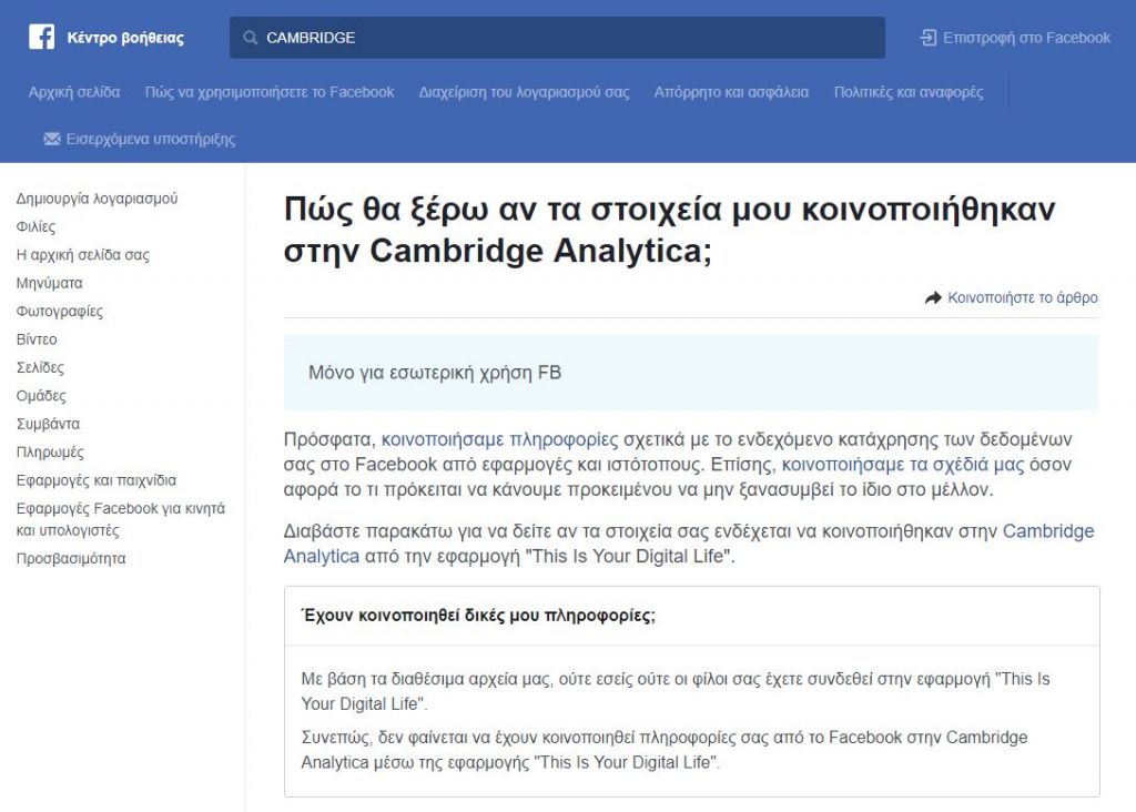 - Βήμα 4ο: Επιλέξτε «πώς θα ξέρω αν τα στοιχεία μου κοινοποιήθηκαν στην Cambridge Analytica»