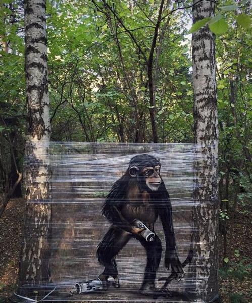 Αρπακτικά, αρουραίοι, μαϊμούδες, σκίουροι και μια πολική αρκούδα γίνονται οι ήρωες των σχεδίων του νεαρού street art καλλιτέχνη. Με μια φευγαλέα ματιά σου δημιουργείται απευθείας η εντύπωση ότι πρόκειται για πραγματικά και ζωντανά πλάσματα.