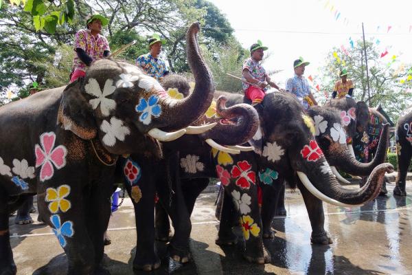 Η παράδοση θέλει τους ελέφαντες να προετοιμάζουν τον κόσμο για το Songkran Festival που γίνεται κάθε χρόνο από τις 13 έως τις 15 Απριλίου για να γιορτάσει τον ερχομό του νέου έτους.