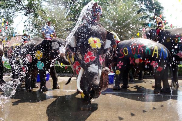 Η παράδοση θέλει τους ελέφαντες να προετοιμάζουν τον κόσμο για το μεγάλο γεγονός του Songkran Festival που γίνεται κάθε χρόνο από τις 13 έως τις 15 Απριλίου για να γιορτάσει τον ερχομό του νέου έτους.