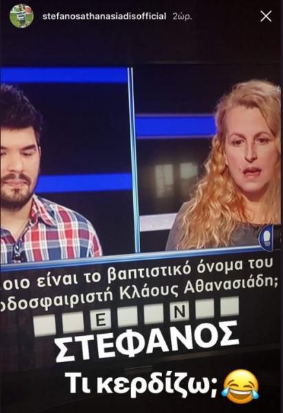 Ο διεθνής επιθετικός Στέφανος Κλάους Αθανασιάδης απάντησε σωστά στην ερώτηση για το βαπτιστικό του όνομα