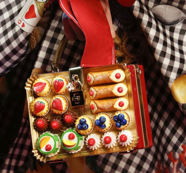 Εκτός από τα πρόσωπα τους, θέλησαν να ανοίξουν την όρεξη όσων εκτιμούν το διάσημο brand, αλλά και το φαγητό. Στην επιφάνεια λοιπόν της τσάντας κόλλησαν ψεύτικα ανάγλυφα λαχταριστά γλυκά, που προκαλούν λιγούρα όχι μόνο σε όσους τη βλέπουν, αλλά και σε όσους τη φορούν.