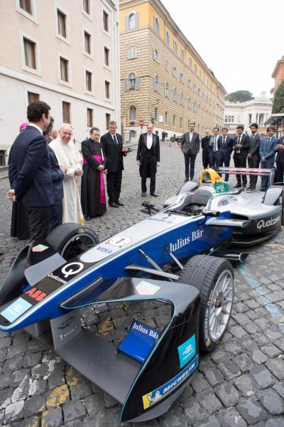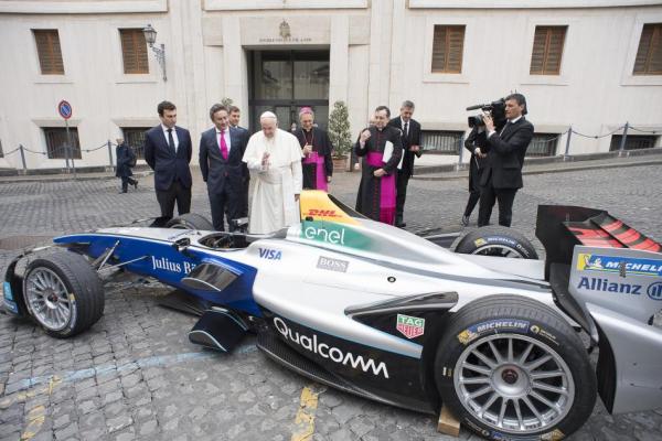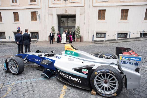 Ο Πάπας Φραγκίσκος ευλόγησε στην Πόλη του Βατικανού ένα μονοθέσιο ηλεκτροκίνητο αγωνιστικό, μια Formula E, σύμφωνα με φωτογραφίες που δόθηκαν στη δημοσιότητα από την Αγία Έδρα.