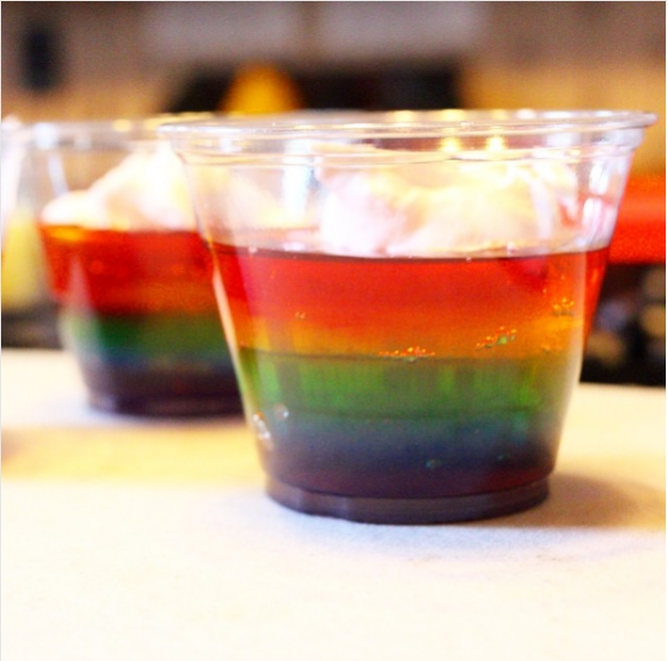 Χρησιμοποιήστε διαφορετικές γεύσεις ζελέ και βάλτε το σε μικρά μπολάκια δημιουργώντας διαφορετικές στρώσεις από χρώματα.