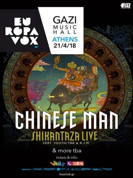 Το Σάββατο 21 Απριλίου, στα πλαίσια του Europavox Festival θα εμφανιστούν στο Gazi Music Hall οι Chinese Man, με τα εκρητκτικά hip hop κομμάτια τους. Εισιτήρια: 28-32 ευρώ