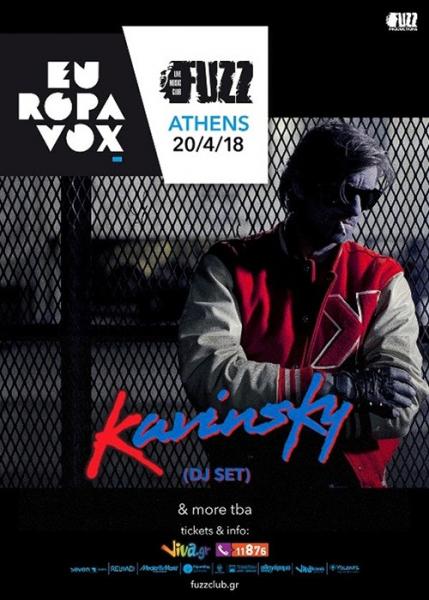 Την Παρασκευή 20/04 o διάσημος μουσικός, παραγωγός και DJ Kavinsky θα βρεθεί στο Fuzz Live Music Club, στα πλαίσια του Europavox Athens. Ο γάλλος μουσικός θεωρείται ένα από τα σπουδαιότερα ονόματα της ηλεκτρονικής μουσικής τα τελευταία χρόνια και έρχεται για πρώτη φορά στην Ελλάδα λίγο πριν την πολυαναμενόμενη δισκογραφική του επιστροφή. Εισιτήρια: 32-35 ευρώ