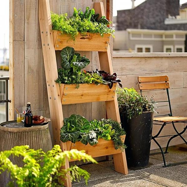 Όπως σε όλα τα πράγματα, έτσι κι εδώ, οι λεπτομέρειες κάνουν τη διαφορά. Επένδυσε σε μία διακοσμητική ξύλινη σκάλα που λειτουργεί σαν ιδιαίτερη γλάστρα για τα φυτά σου. Αν πιάνουν τα χέρια σου, μπορείς να το φτιάξεις και μόνη σου. Στήριξέ (ή βίδωσέ) την στη μία άκρη του μπαλκονιού και τοποθέτησε δίπλα έναάδειο βαρέλι που λειτουργεί σαν κομοδίνο μπαλκονιού.