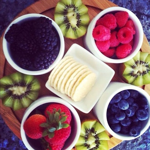 Εκτός από τα smoothies και τους χυμούς, η Ζιζέλ φτιάχνει πιατέλες με φρούτα για σνακ, ώστε να λαμβάνει ένα ευρύ φάσμα βιταμινών: φράουλες, σμέουρα, βατόμουρα, ακτινίδια. Όλα από το βιολογικό κήπο της.