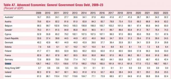 Ειδικότερα, το ΔΝΤ κάνει τις ακόλουθες προβλέψεις για την πορεία του χρέους της γενικής κυβέρνησης: