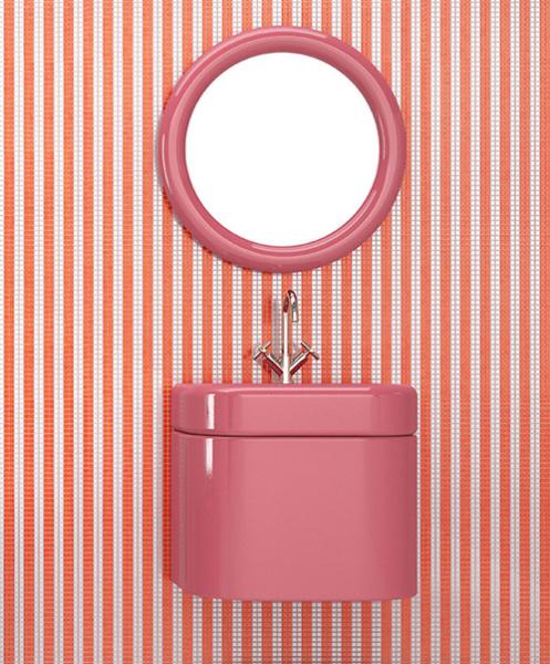 Μεταξύ των άλλων εντυπωσιακών δημιουργιών της, δεσπόζει ένα λουτρό με νοσταλγική διάθεση, στο χρώμα του ροζ ζαχαρωτού.