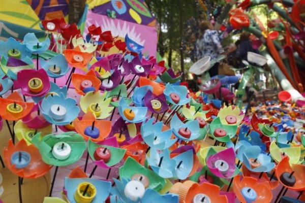 Η εγκατάσταση είναι κατασκευασμένη εξ ολοκλήρου από πλαστικό. Ο καλλιτέχνης συγκέντρωσε διαφόρων ειδών πλαστικά απορρίμματα και τα μετέτρεψε σε χρωματιστές κατασκευές που αναπαριστούν περίεργα λουλούδια και φυτά.