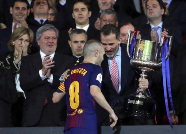 Ο Αντρές Ινιέστα που θα αποχωρήσει, εκτός συγκλονιστικού απροόπτου, το καλοκαίρι έπειτα από 16 χρόνια στη Μπαρτσελόνα, δάκρυσε στην αλλαγή του, αποθεώθηκε από το κατάμεστο γήπεδο, ενώ ήταν και αυτός που σήκωσε την κούπα του Κυπέλλου, στο ισοπεδωτικό 5-0 επί της Σεβίλη.
