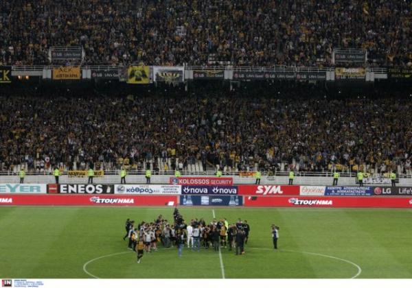 Ο κόσμος της Ένωσης, που είχε γεμίσει το ΟΑΚΑ είχε ετοιμάσει από πριν την έναρξη ένα «πάρτι», το οποίο κορυφώθηκε με το σφύριγμα της λήξης της αναμέτρησης.