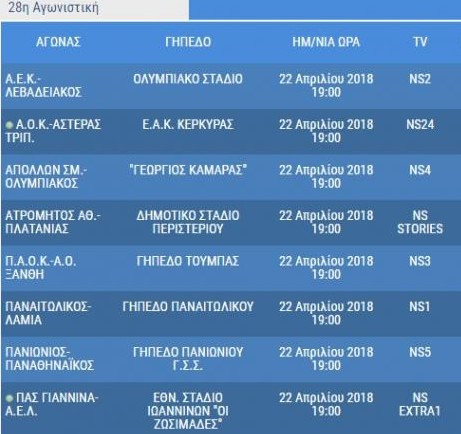 Τέλος, στη μάχη της 5ης θέσης, και του τελευταίου ελληνικού ευρωπαϊκού εισιτηρίου, ο Αστέρας Τρίπολης θα «ψάξει» το διπλό στην Κέρκυρα, η οποία όμως θέλει πάση θυσία τη νίκη για να διατηρήσει μαθηματικές ελπίδες παραμονής.
