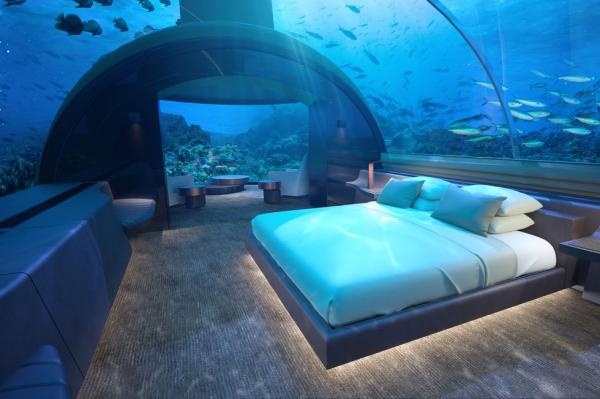 Η νέα υποθαλάσσια βίλα θα έχει δύο ορόφους: μια στο επίπεδο της θάλασσας και μια σουίτα υπνοδωματίου σχεδιασμένη ώστε να μπορείτε να κοιμάστε κάτω από τη θάλασσα του Ινδικού Ωκεανού. Το υποθαλάσσιο επίπεδο θα προσφέρει πανοραμική θέα στο γύρω ωκεανό από το κρεβάτι σε king size, το καθιστικό και το μπάνιο.