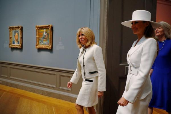 Οι δύο κυρίες Μελάνια και Μπριζίτ έκλεψαν όπως ήταν φυσικό τις εντυπώσεις τόσο κατά τη διάρκεια της υποδοχής του ζευγαριού στον Λευκό Οίκο όσο και στην ξενάγηση των δύο γυναικών στην Εθνική Πινακοθήκη Καλών Τεχνών στην Ουάσιγκτον.