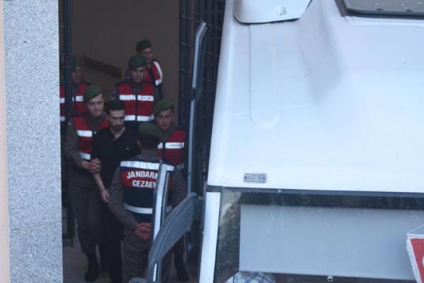 Στα πλάνα, από την τουρκική εφημερίδα Milliyet, οι Άγγελος Μητρετώδης και Δημήτρης Κούκλατζης εικονίζονται να βαδίζουν με χειροπέδες και να συνοδεύονται από δύο χωροφύλακες έκαστος.