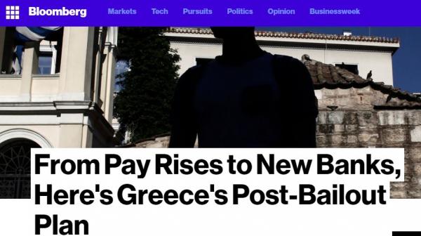 «Αναρωτηθήκατε ποτέ τι σχεδιάζει να κάνει η Ελλάδα, πώς θα αξιοποιήσει την οικονομική ελευθερία, μόλις «δραπετεύσει από τα δεσμά» του προγράμματος διάσωσης τον Αύγουστο;» είναι ο χαρακτηριστικός τρόπος με τον οποίο ξεκινά άρθρο του Bloomberg, στο οποίο αναφέρονται τα βασικά σημεία του προσχεδίου του ελληνικής αναπτυξιακής στρατηγικής που παρουσίασε ο υπουργός Οικονομικών στο σημερινό (Παρασκευή) Eurogroup στη Σόφια.