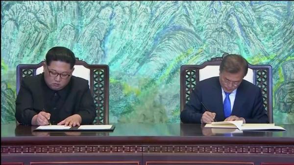 Διακήρυξη για την πλήρη αποπυρηνικοποίηση της Κορεατικής Χερσονήσου υπέγραψαν οι ηγέτες της Βόρειας και Νότιας Κορέας, ενώ οι δύο πλευρές, ενώ οι δύο πλευρές ανακοίνωσαν πως θα επιδιώξουν συμφωνία που θα εξασφαλίζει τη μόνιμη και σταθερή ειρήνη στην Κορεατική Χερσόνησο.