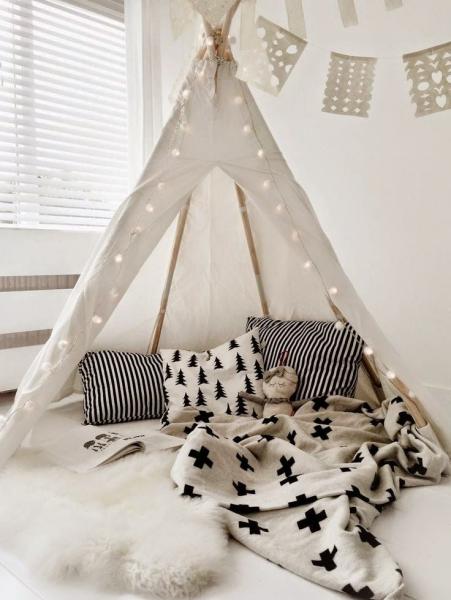 Αν είστε λάτρεις των χειροποίητων κατασκευών, τότε σίγουρα θα λατρέψετε αυτές τις μικρές τέντες που μπορείτε να βάλετε σε οποιαδήποτε γωνία του παιχνιδιού. Μπορείτε να τη στολίσετε με λούτρινα αρκουδάκια, χνουδωτά μαξιλάρια, απαλές κουβέρτες, χρωματιστές γιρλάντες και φωτεινά λαμπάκια.